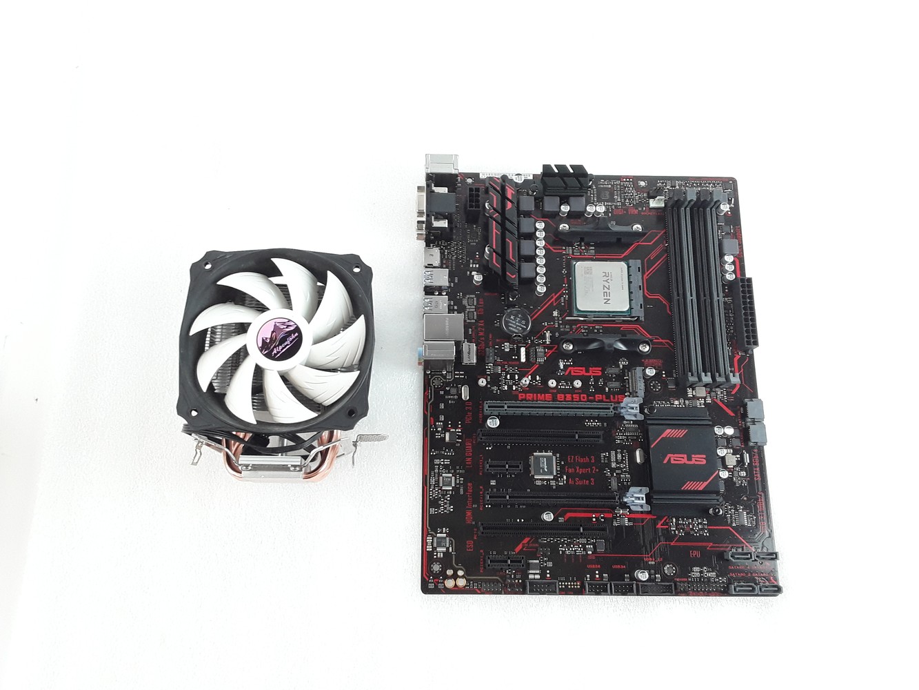 - Lieferumfang: 1x ASUS Prime B350-PLUS AM4 Mainboard, 1x Ryzen™ 5 1600, 1x IO-Blende, 1x Alpenföhn Ben Nevis