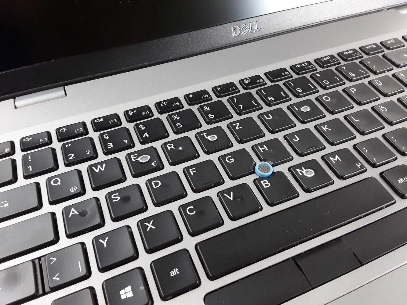 Optisch: Deutlich sichtbare Gebrauchsspuren am Gehäuse- insbesondere der Tastatur. Siehe Abbildungen.