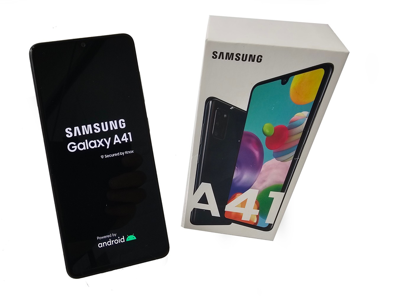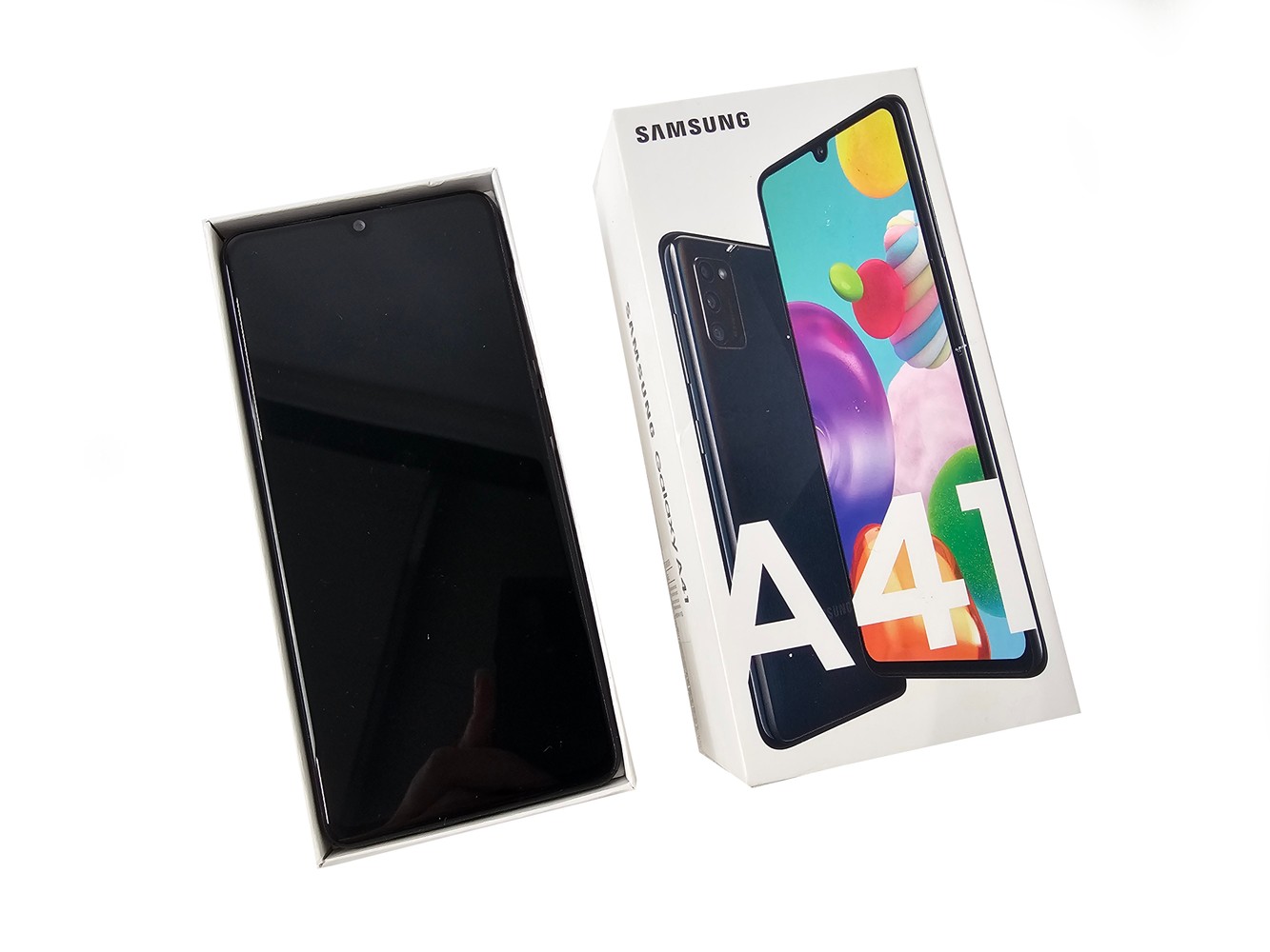 - Im Lieferumfang enthalten: 1 x Samsung Smartphone Galaxy A41 A415F/DSN 64GB 6,1 Zoll AMOLED Full HD in OVP - ohne Ladekabel/Netzteil/Zubehör